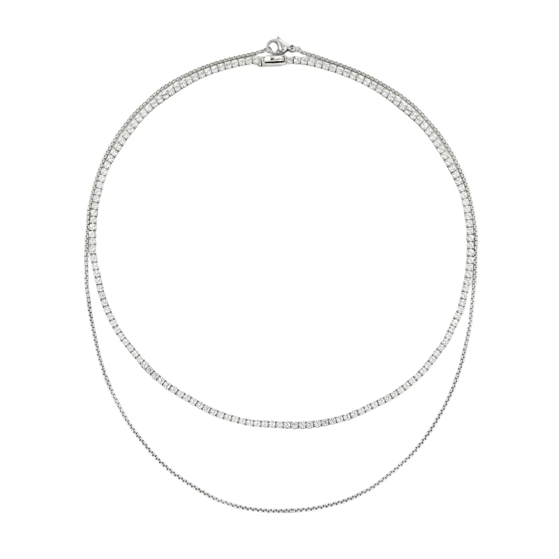 - 925 sterling silver cubic zirconia tennis necklace - 2 mm wide