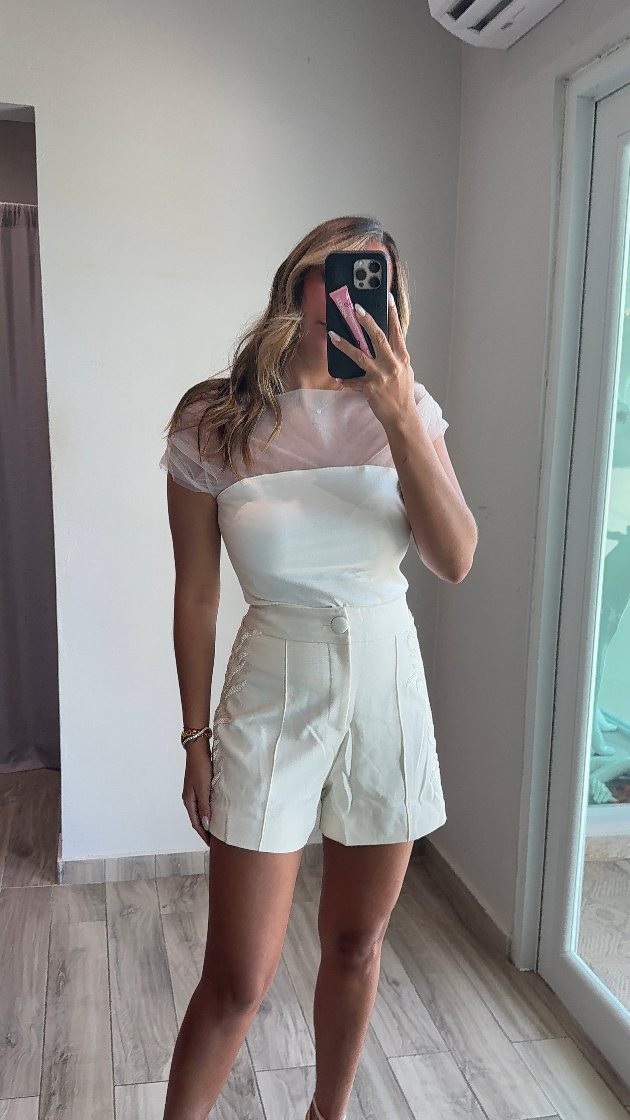 The Alba Mesh & Ponti Drape Top runs true to size with a flattering drape that moves with you. The blend of mesh and ponti fabric offers great stretch for all-day comfort and ease of movement. The model is wearing a size small. Perfect for layering or wearing on its own, this top adapts to your style and body with effortless grace.