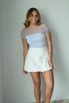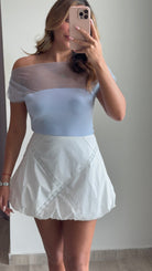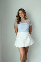 The Sunday Mesh & Ponti Drape Top runs true to size with a flattering drape that moves with you. The blend of mesh and ponti fabric offers great stretch for all-day comfort and ease of movement. The model is wearing a size small. Perfect for layering or wearing on its own, this top adapts to your style and body with effortless grace.