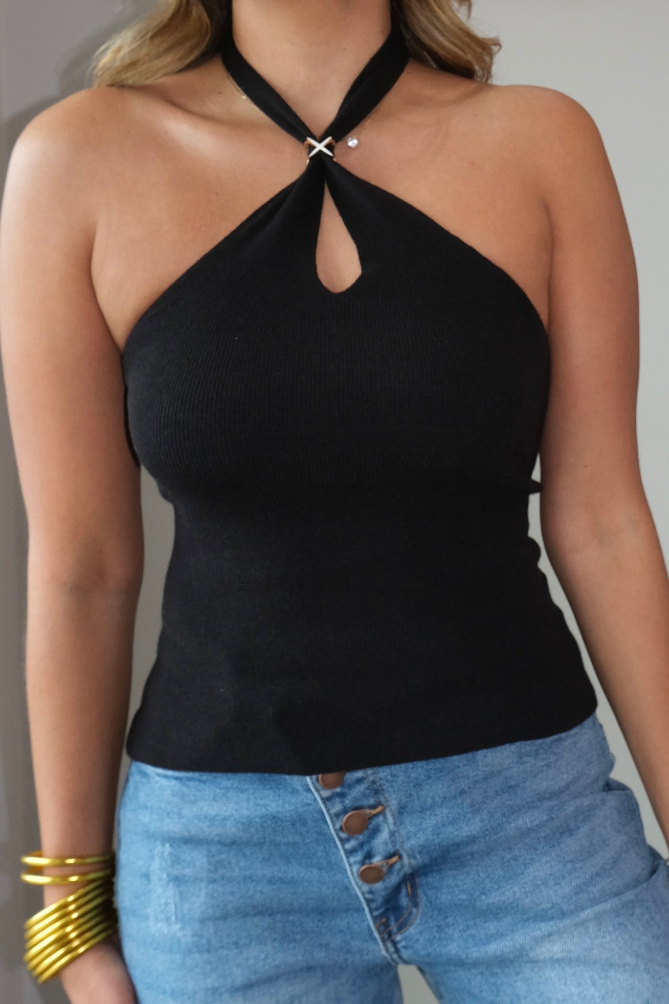 Victoria Gold Detailed Knit Halter Top