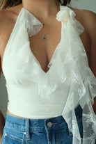 Bianca Rose Lace Mesh Ruffled Halter Top.
