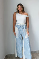 Lindsay Denim & Lace jeans feature 100% cotton fabric for a comfortable and durable fit. Designed with lace details and striped down pattern, these jeans add a touch of sophistication to any outfit. They run slightly large, so you can size down for a perfect fit. Model is wearing a size small.
