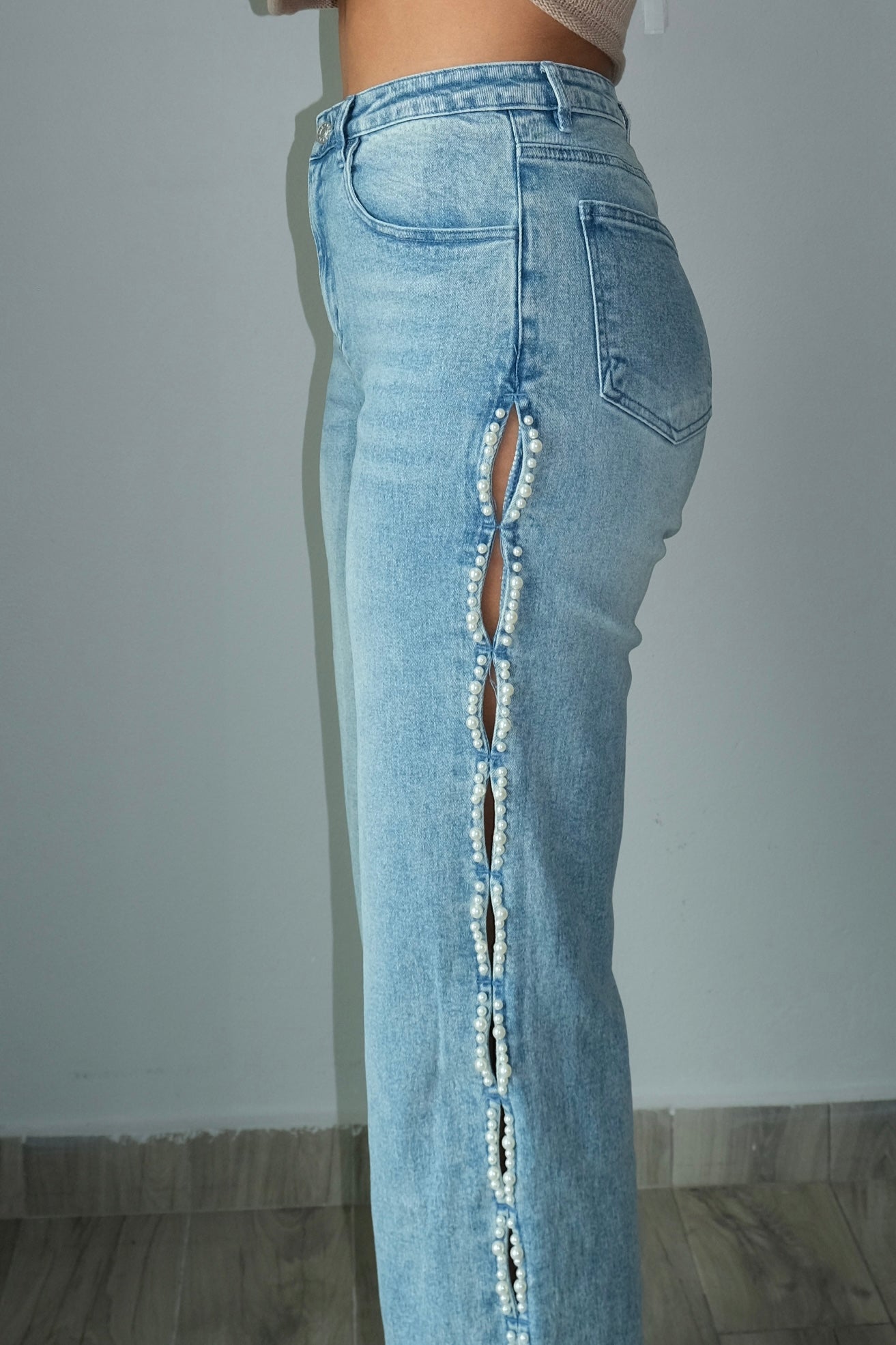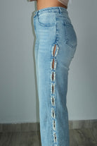 Pearl Stud Cut Out Jeans