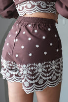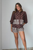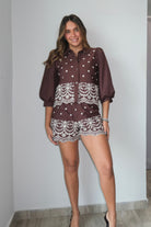 This Holly embroidered detailed top & short set is designed to fit true to size and is made from 100% cotton. Its high-quality material ensures a comfortable and breathable wear. Perfect for any occasion, this set is both stylish and practical. Model is wearing size small.