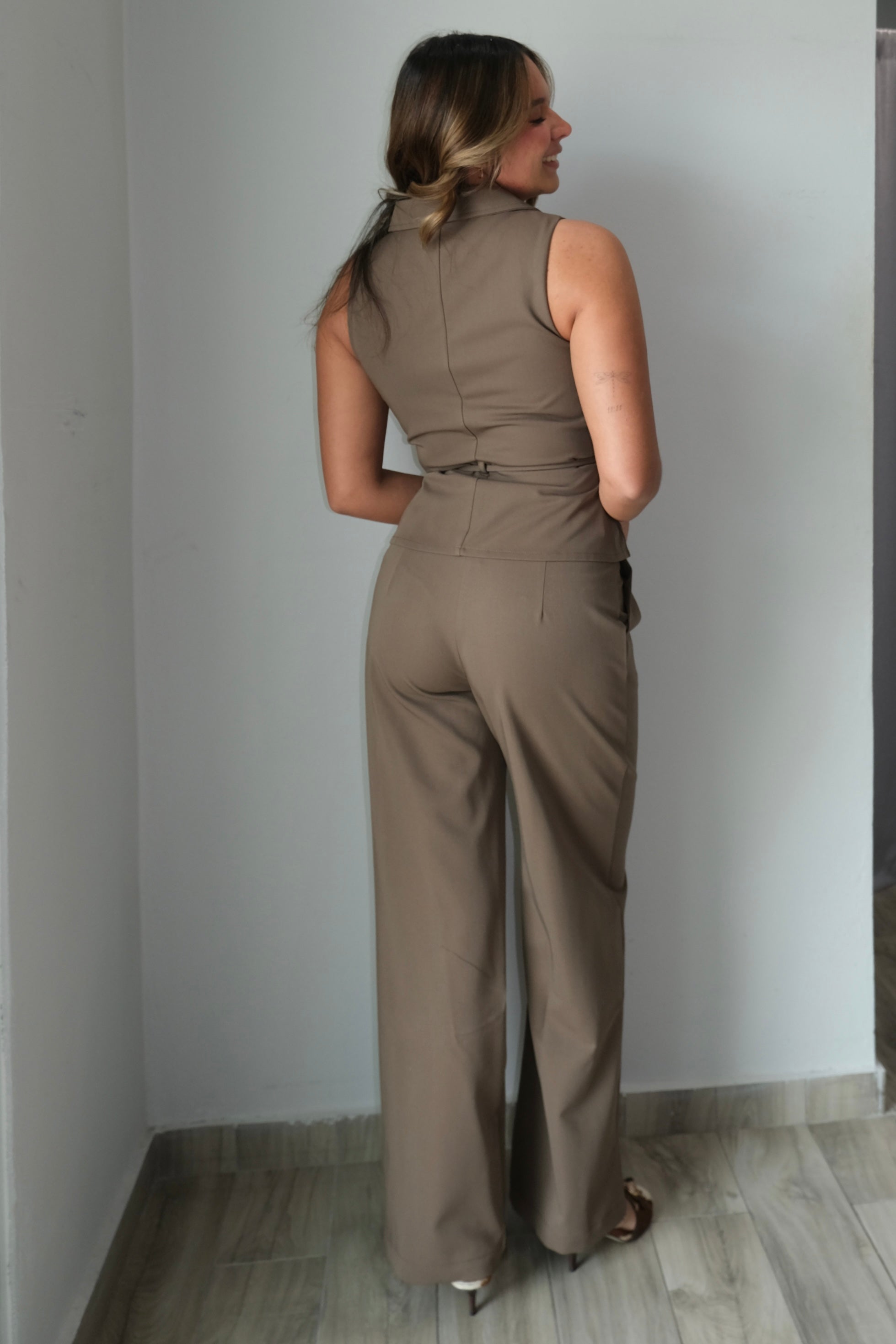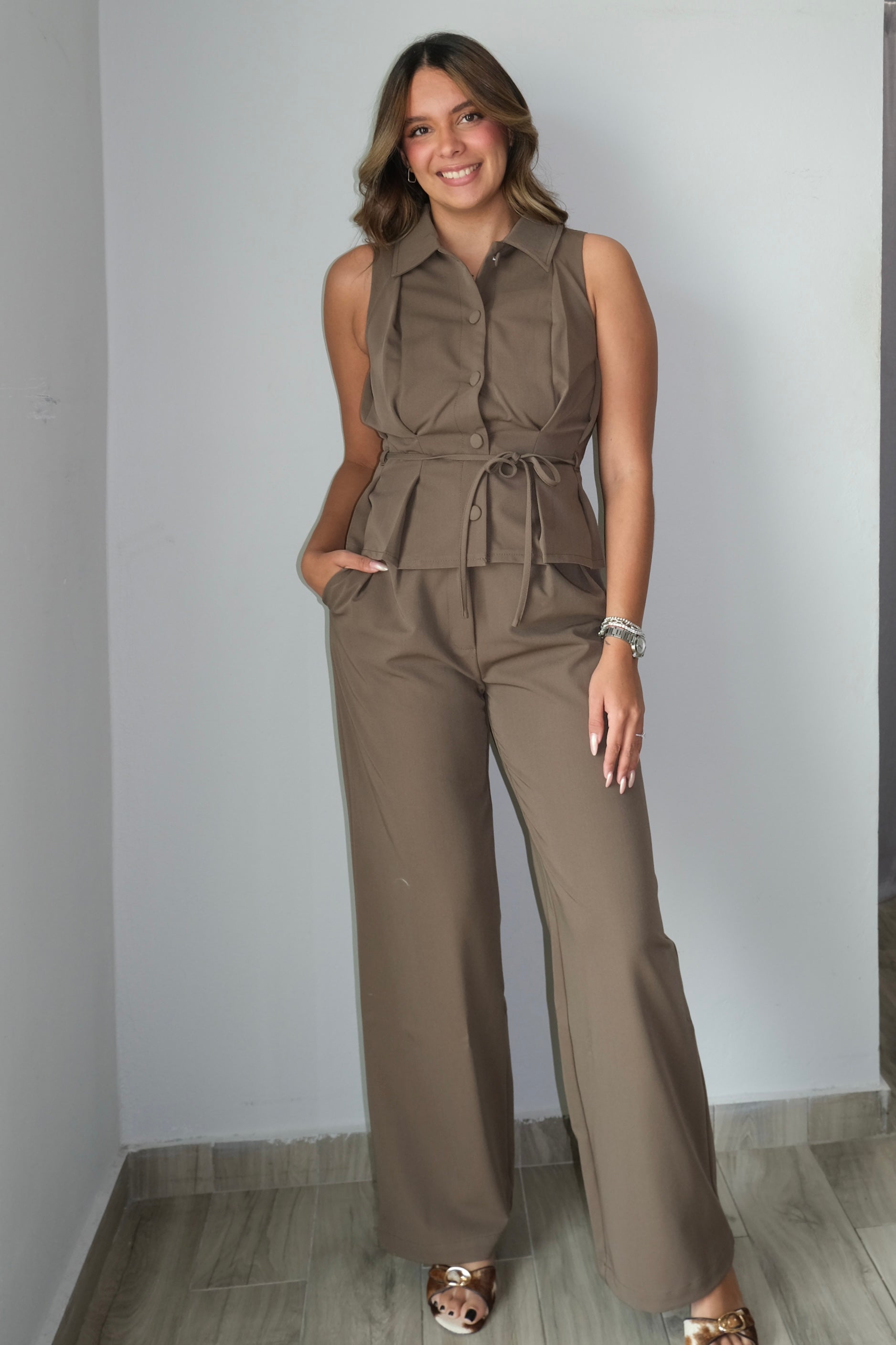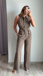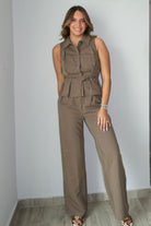 Maisy Pleats Detail Button Down Top & Tailored Pants Sets