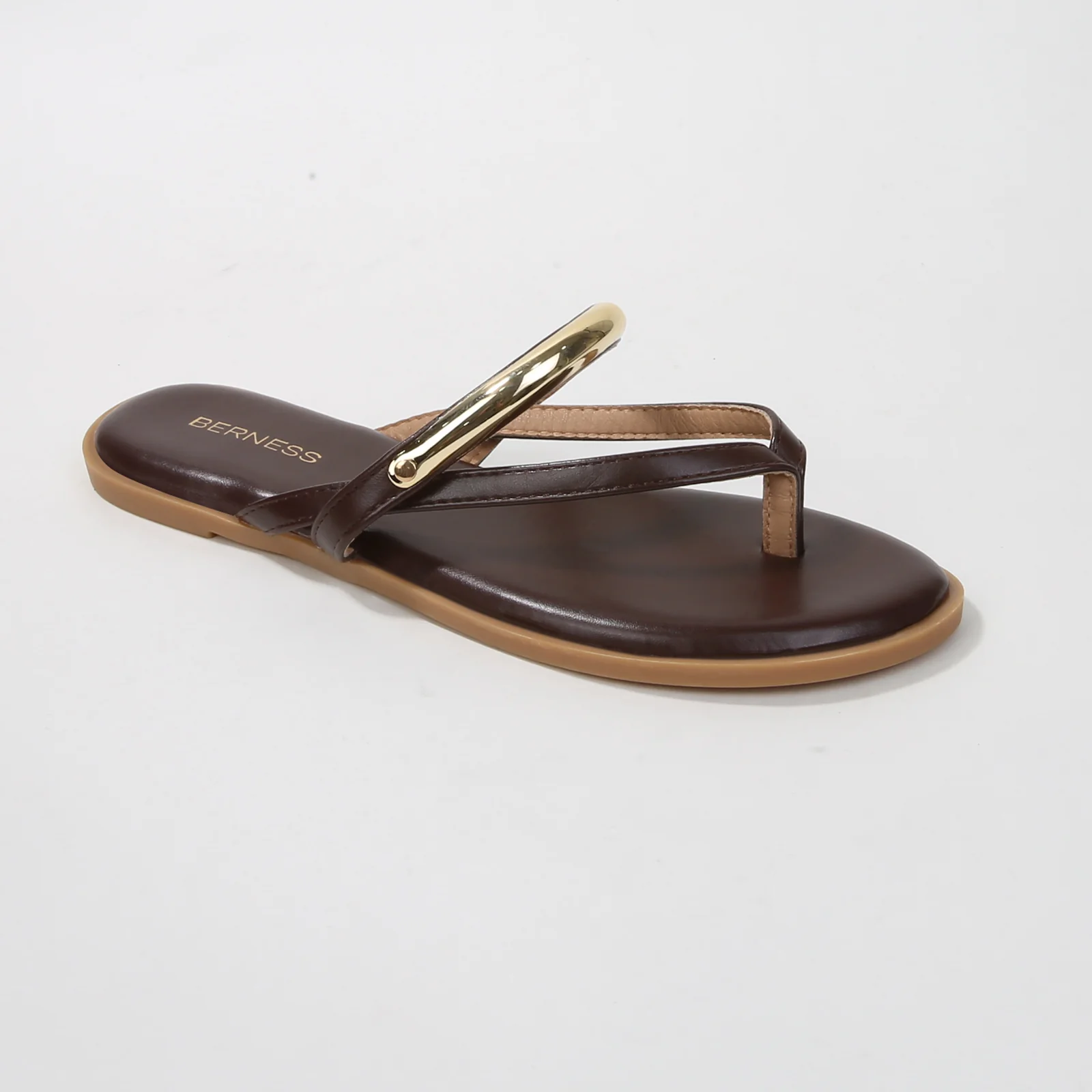 Light, sleek, and modern! These thong sandals feature slim straps and a bold metallic ring accent that instantly elevates your looks. Perfect for everyday wear.