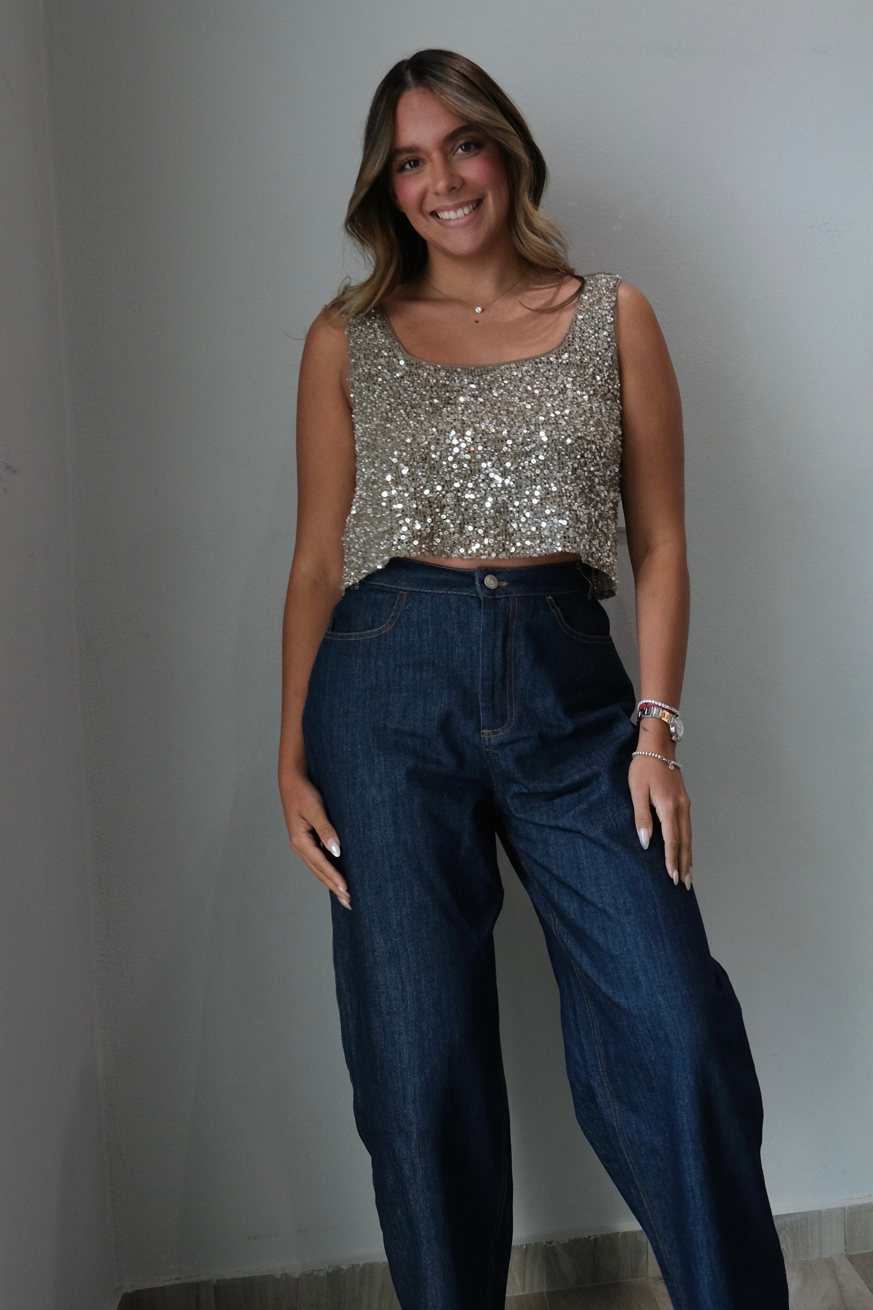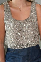 The Sunday Beaded Sequin Pearly Mesh Top runs true to size. Our model is wearing a small. If you prefer a more fitted look, you can size down. The beaded sequin details and pearly mesh create a shimmering, eye-catching piece perfect for special occasions or nights out. The lightweight mesh allows for comfortable wear while the intricate beadwork adds elegance and dimension to your wardrobe.