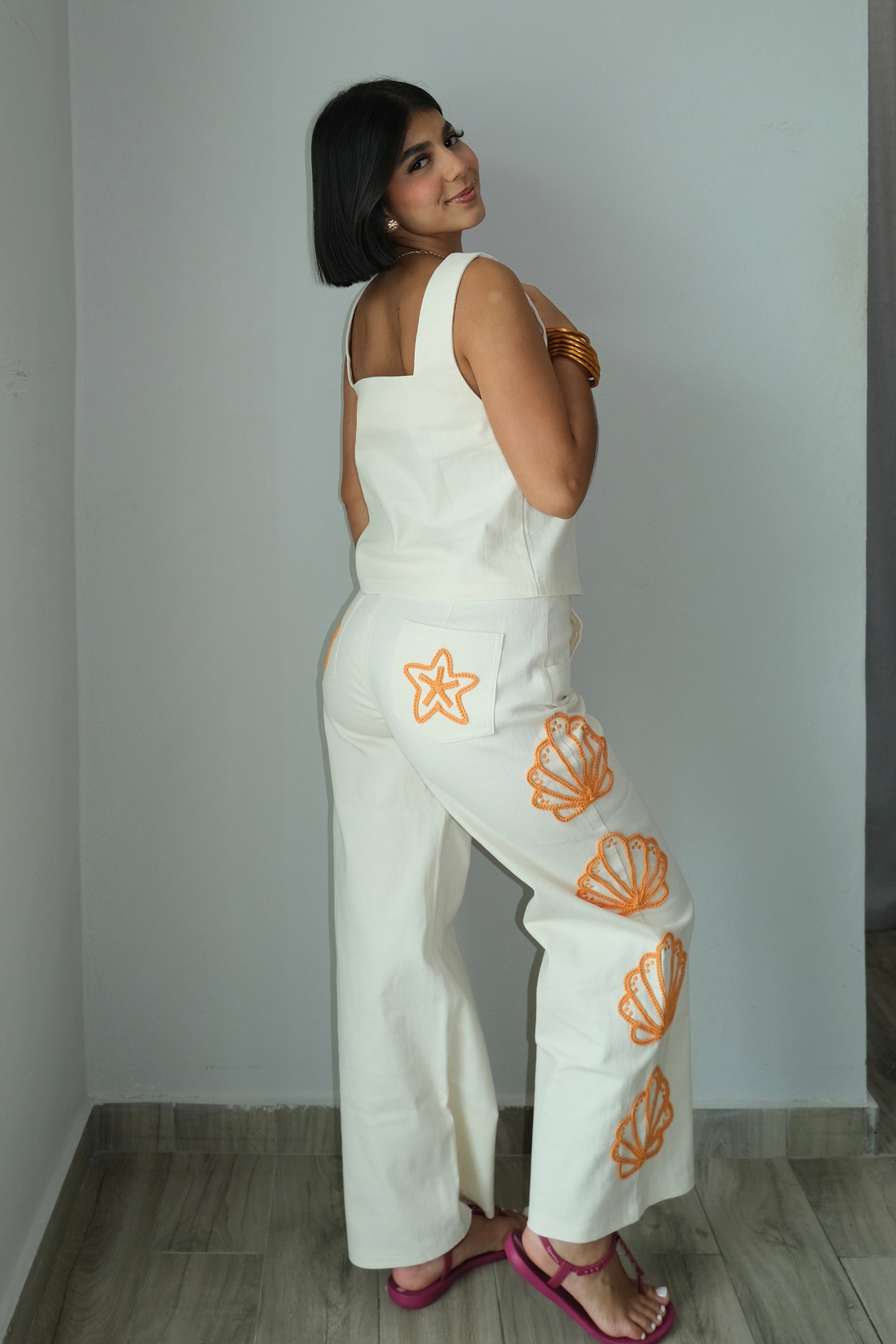 Juliana Embroidered Square Neck Top & Barrel Jeans Set