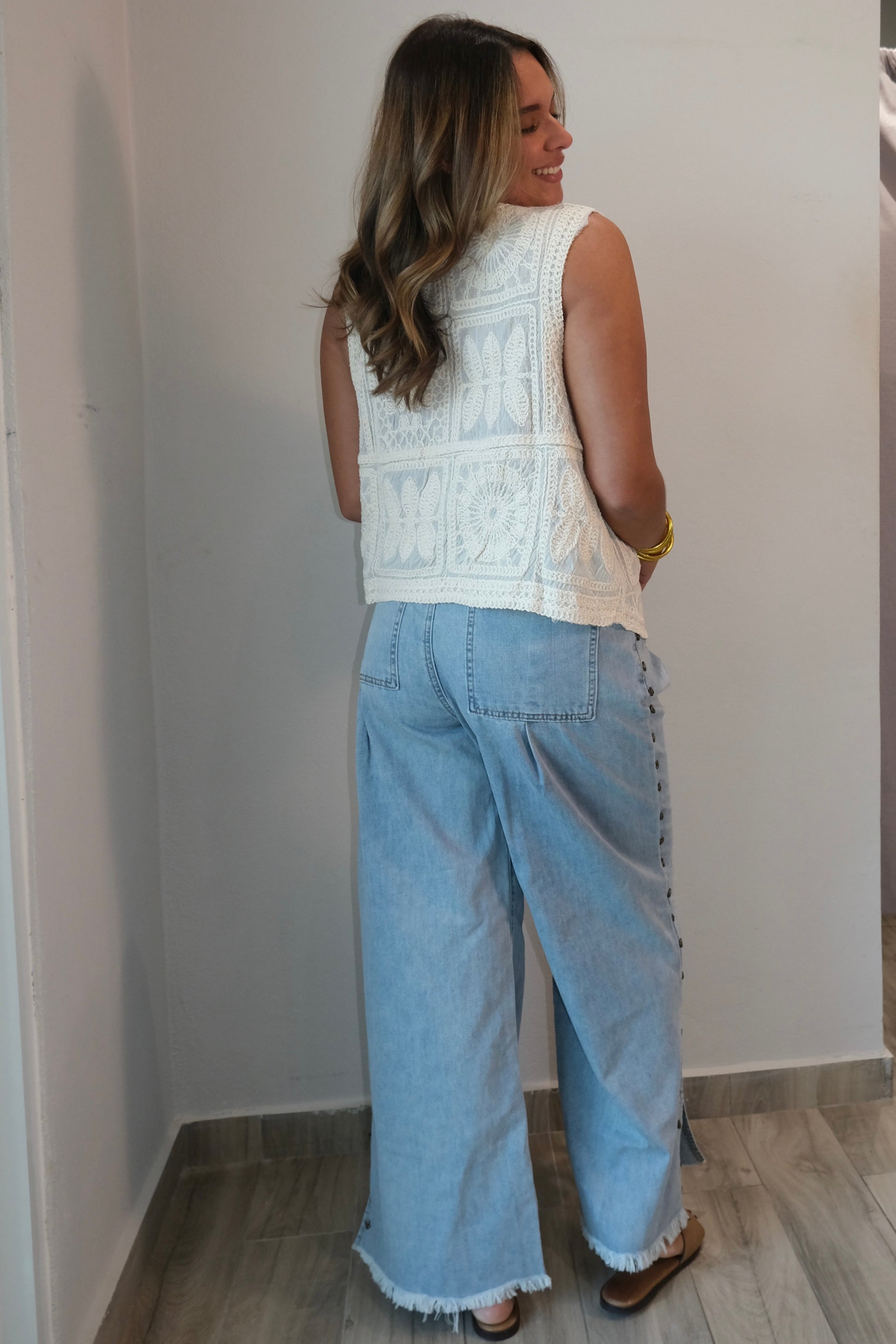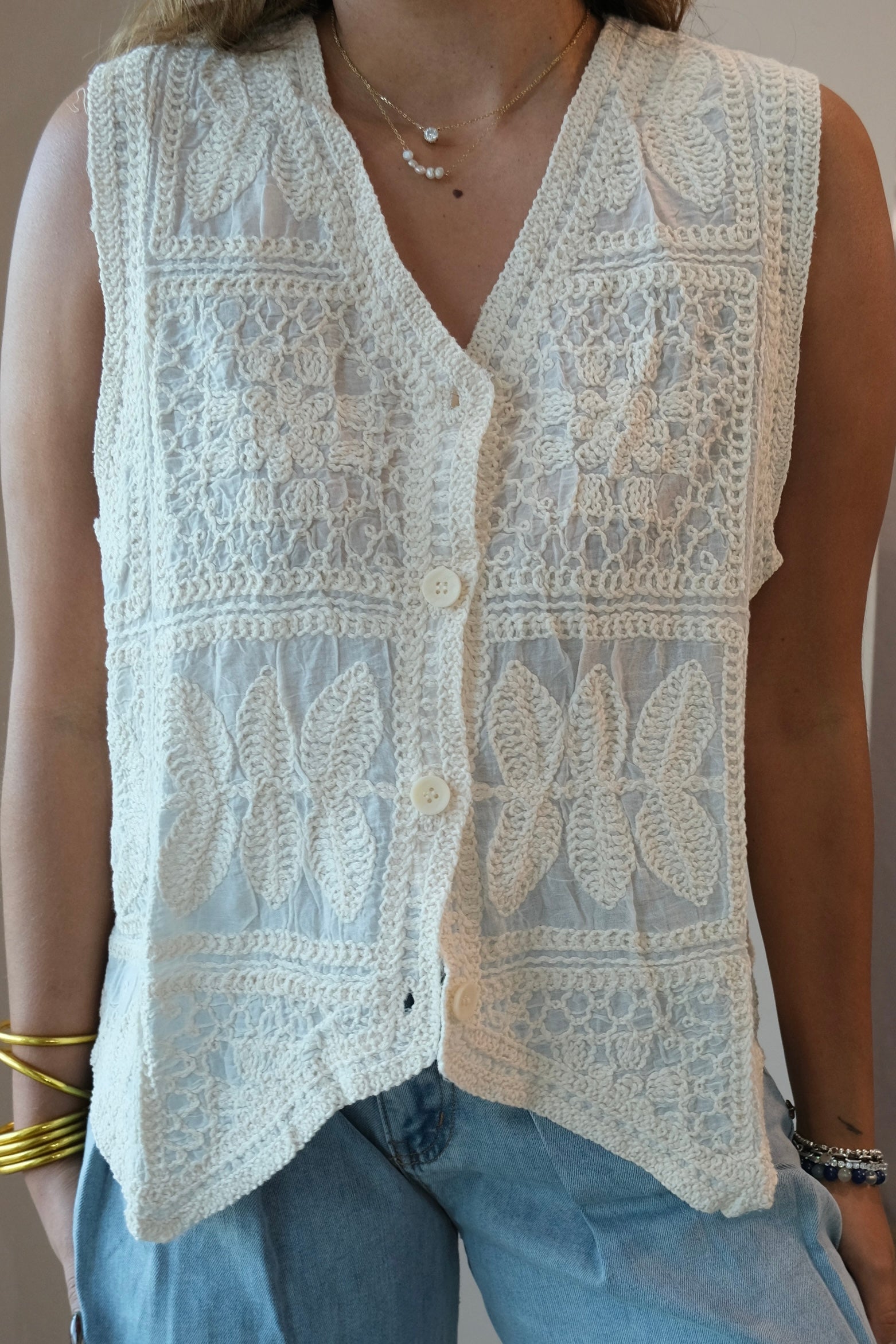 The Polly Knit Embroidered Vest Top offers a comfortable, slightly oversized fit that flatters various body types. Crafted from 95% cotton, it ensures breathability and softness, making it ideal for all-day wear. Its embroidered detailing adds a subtle, refined touch, perfect for layering or wearing on its own. Designed to run one size larger, this vest top guarantees ease of movement without sacrificing style.