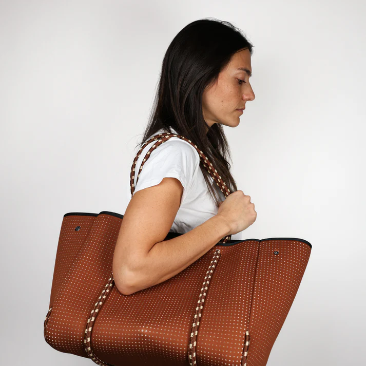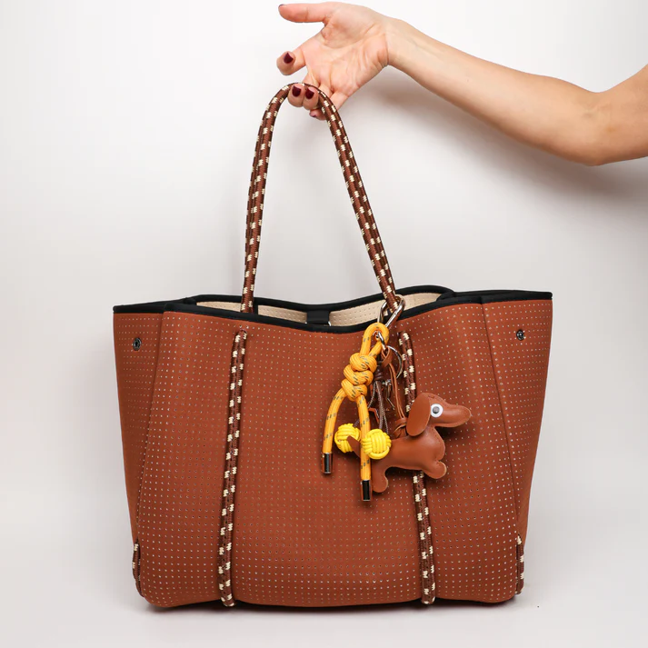 KEY CHAIN BLACK WITH CHARMS - TAN ROPE AND YELLOW HORSE