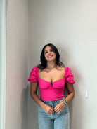 Le haut Layla est confectionné à partir de coton tissé de haute qualité et d'une doublure en rayonne douce. Un décolleté en cœur et des manches bouffantes créent un look sans effort et intemporel, parfait pour toutes les occasions. Conçue de manière experte, cette pièce promet un port confortable et durable.