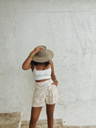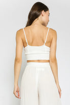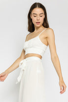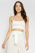 Notre débardeur court présente une taille smockée et des bretelles réglables. Tissé.