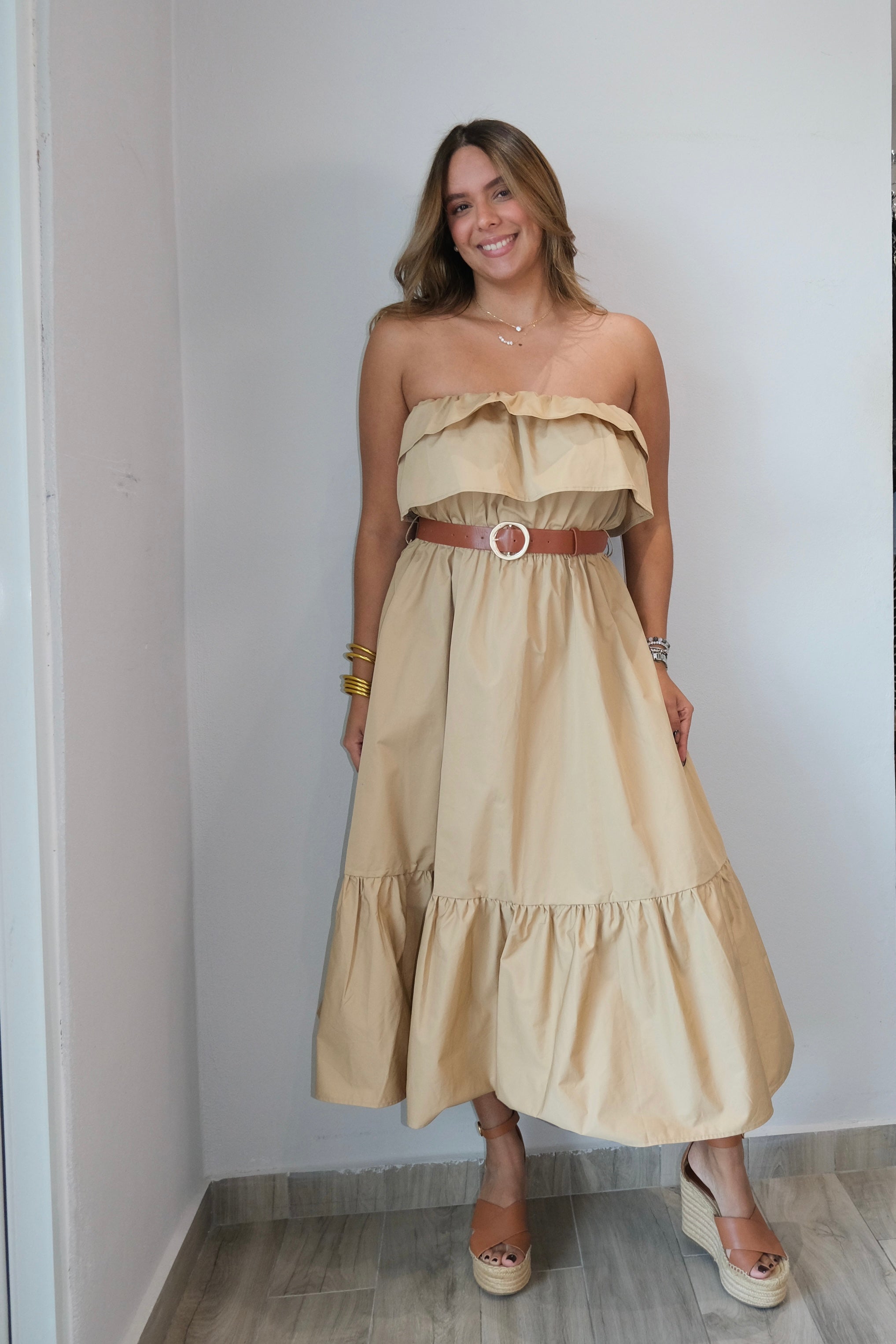 Expertly designed and crafted for all-day comfort, the Sophie Strapless Maxi Dress W Belt is a must-have addition to your wardrobe. Made with 100% cotton, this dress features a stretchy elastic band for a perfect fit. Runs true to size, but if in between sizes, we recommend going a size down. Our model is wearing a small.