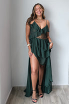 This Ivy Lace Ruffle Dress features a lace insert and tiered design, adding elegant details to your outfit. Made of 100% polyester, it provides a soft and comfortable fit. With a design that runs true to size, this dress is perfect for any occasion. Our model is wearing a size small, showcasing the dress's perfect fit.