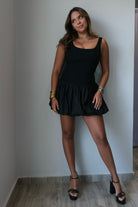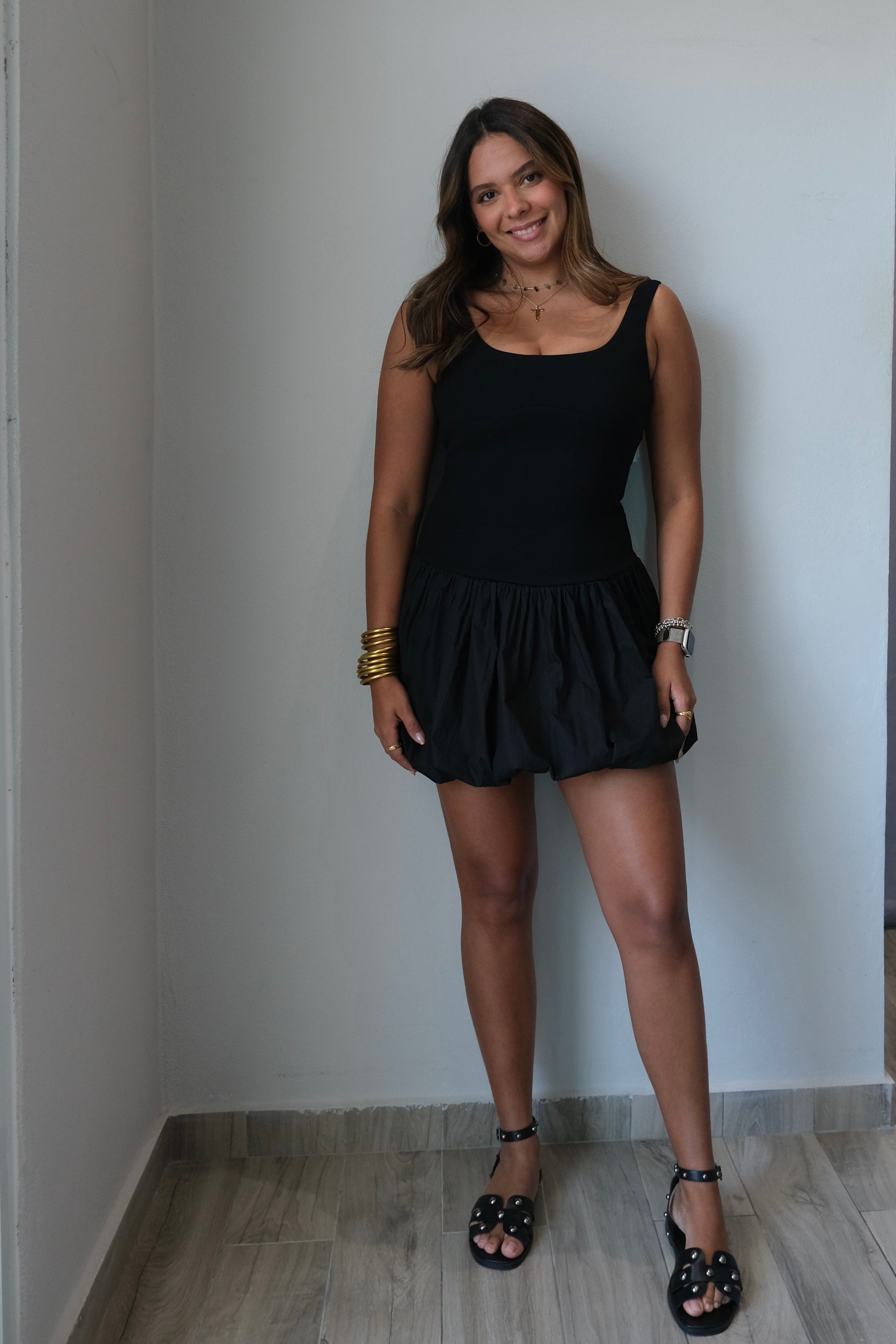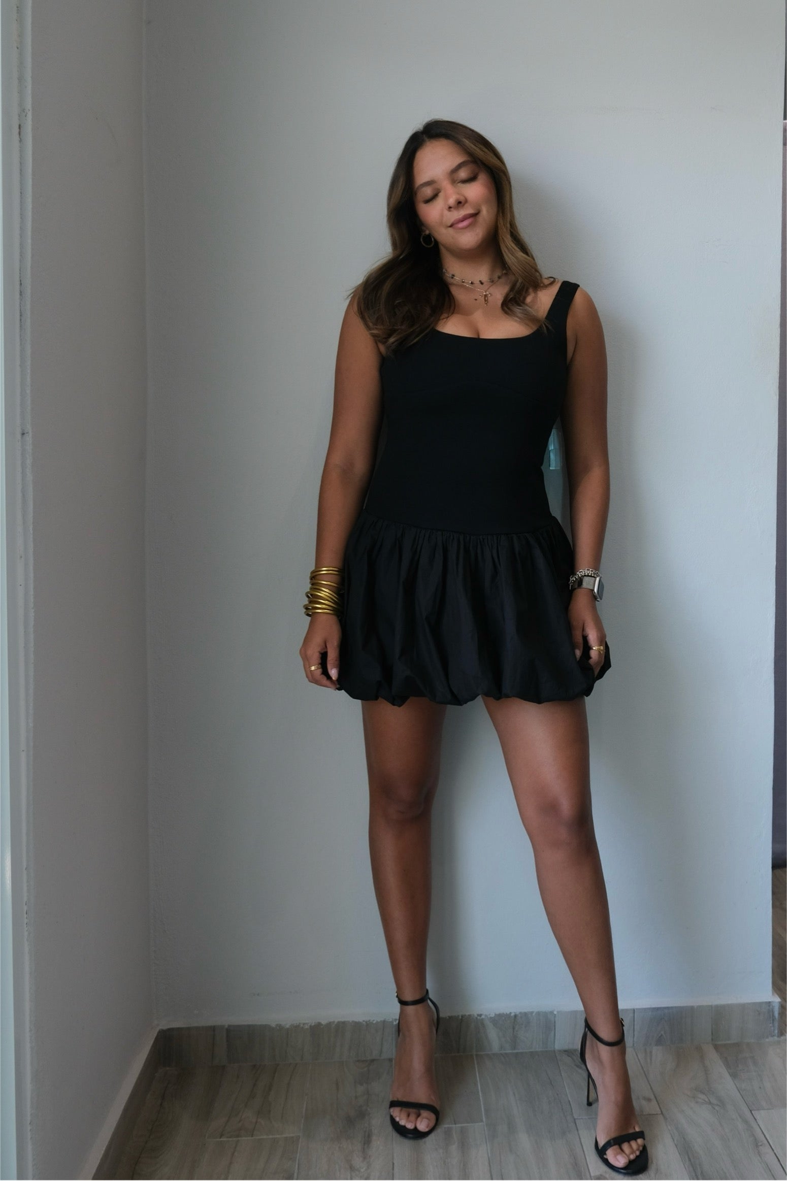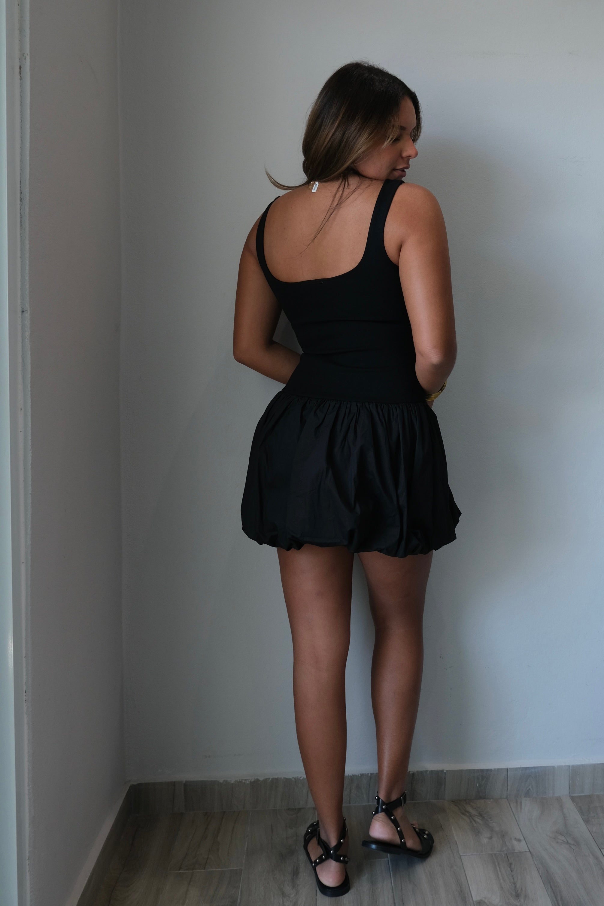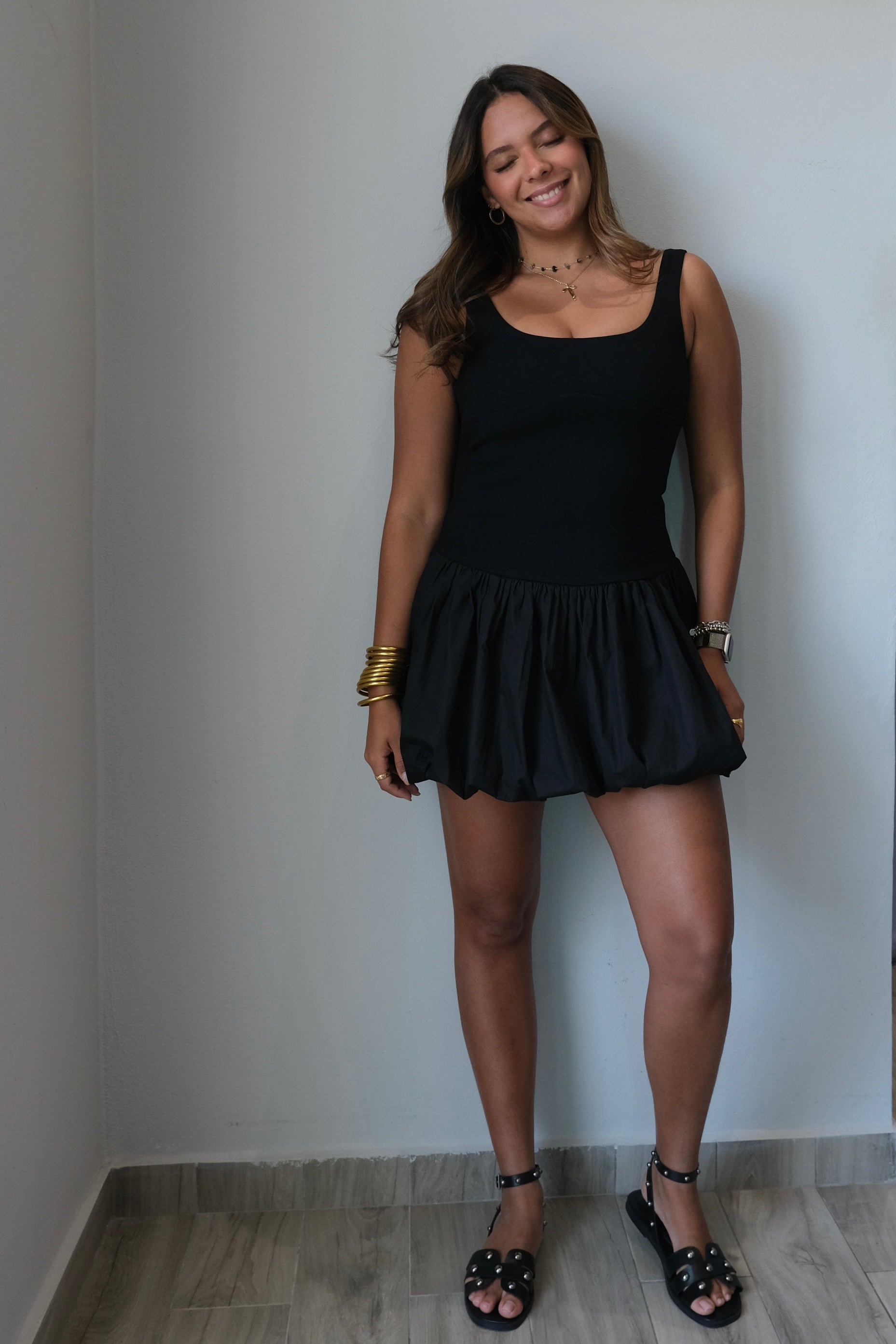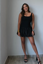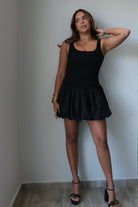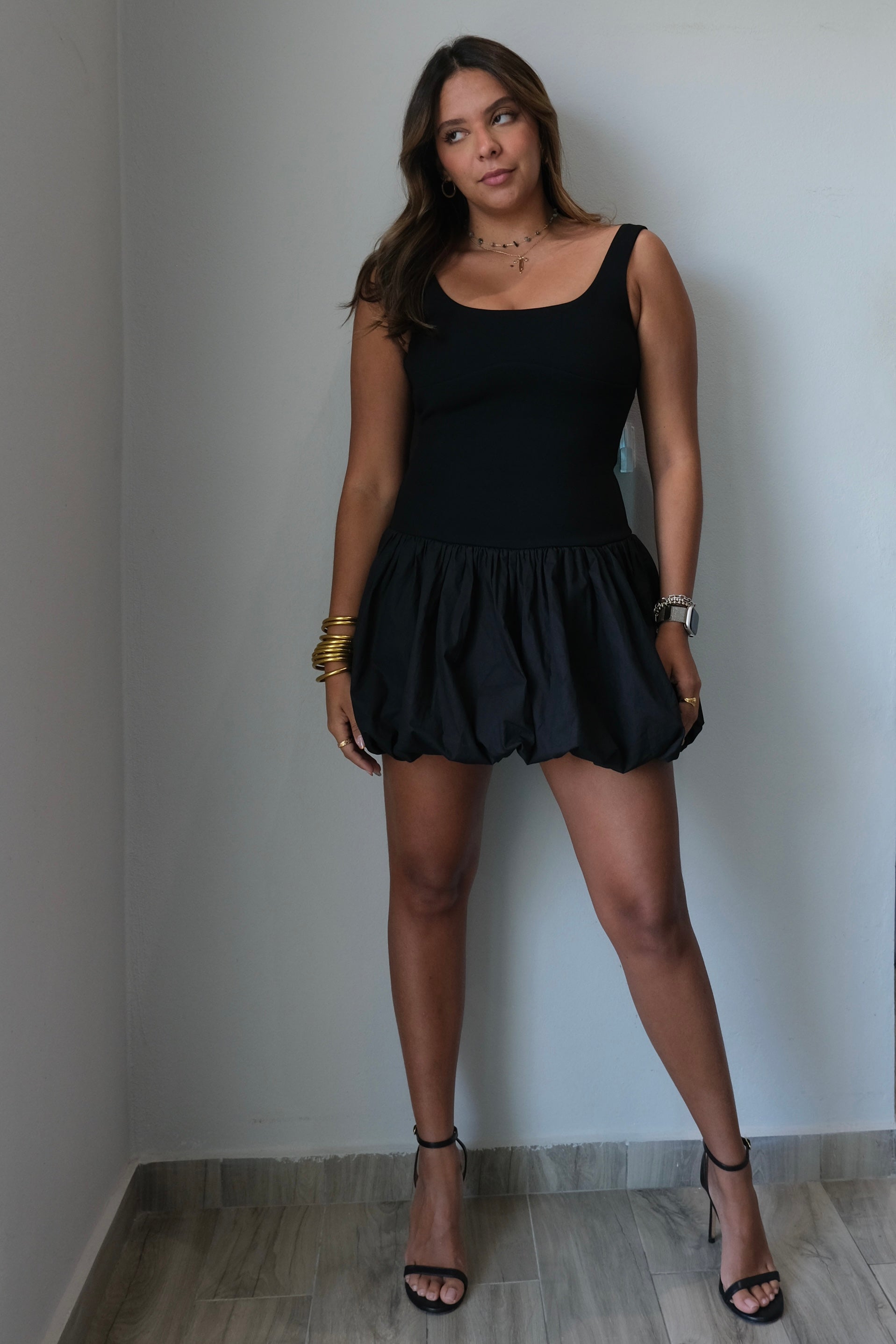 Ivana Bubble Dress: A stylish and comfortable dress with a knit bodice and a woven bubble hem. The scoop neckline adds a touch of sophistication. The dress includes lining made of a soft and stretchy fabric blend. Designed to fit true to size, model is wearing small.