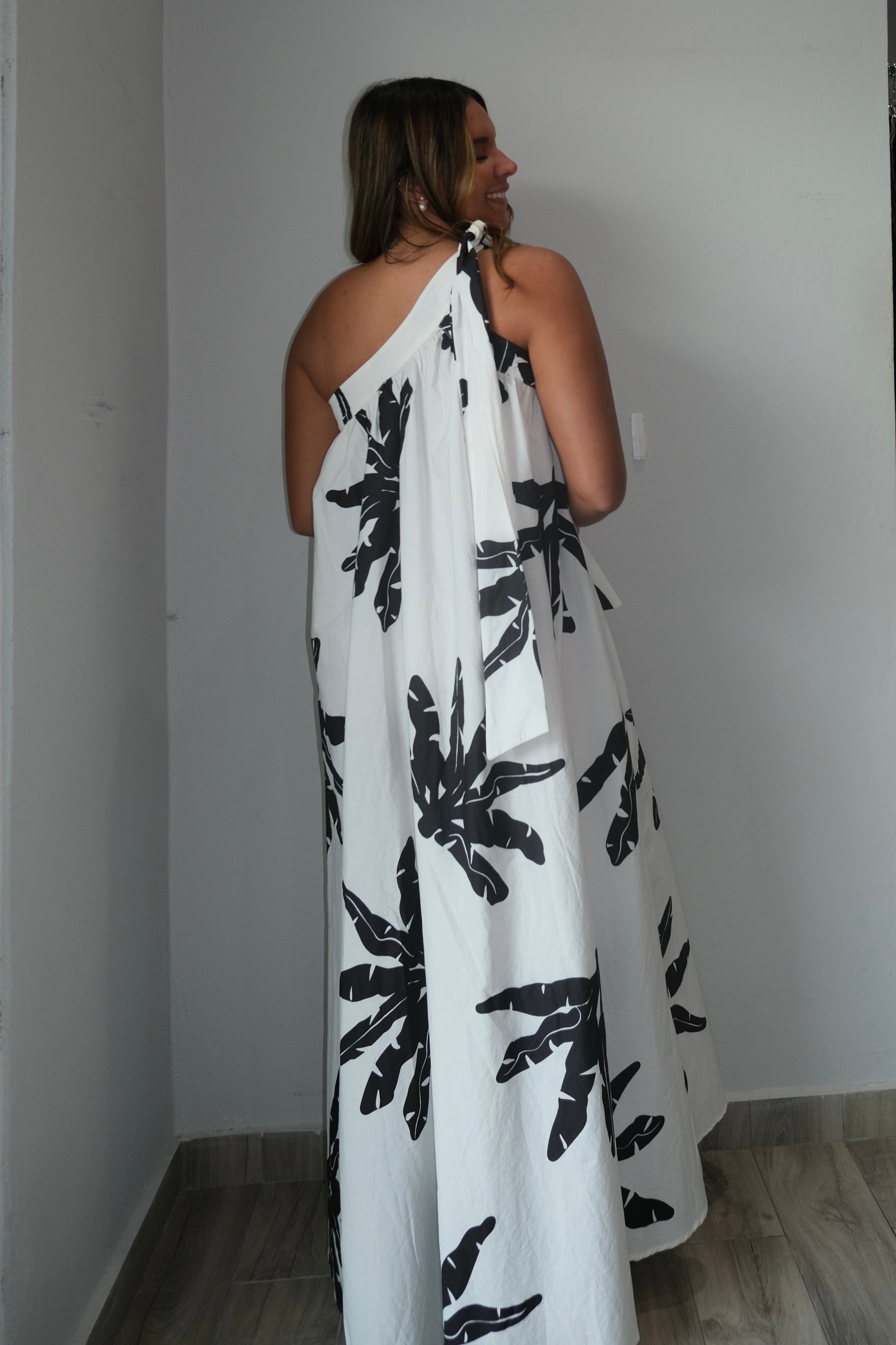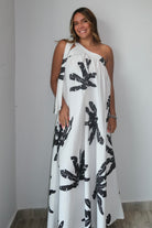 Crafted from 100% cotton, the Cyra One Shoulder Relaxed Dress offers breathable comfort and a natural feel. Designed to run true to size, it ensures a flattering fit without compromising ease of movement. The model showcases a size small, highlighting the dress’s relaxed silhouette and elegant one-shoulder design, perfect for both casual and refined occasions.
