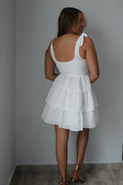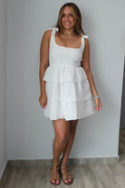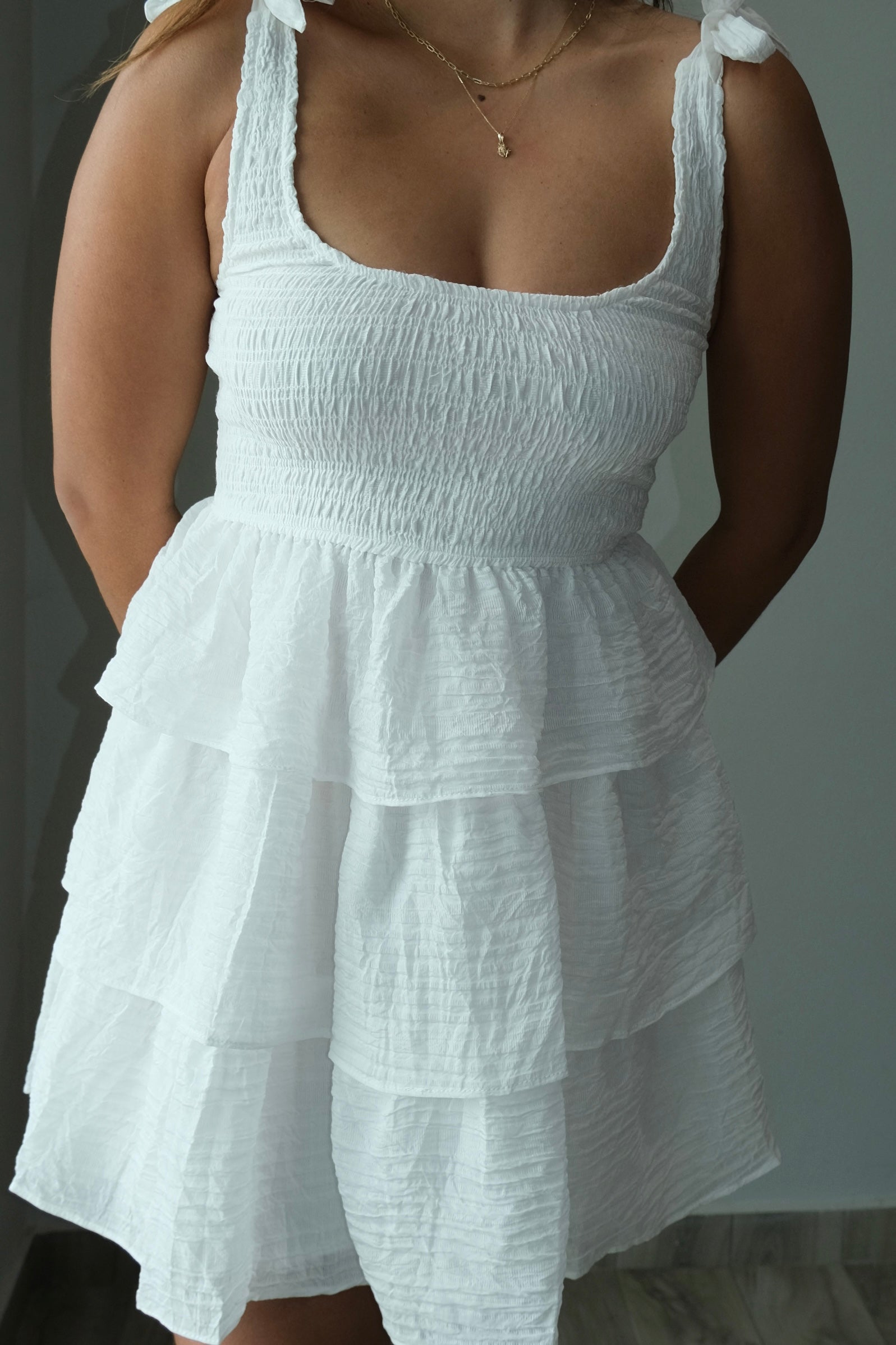 This Liora Shoulder Tie & Smocked Dress is made of 100% polyester and features a fully smocked top with added spandex for comfort and flexibility. The dress is designed to run true to size, and the model is wearing a size small. Stay stylish and comfortable with this versatile dress.