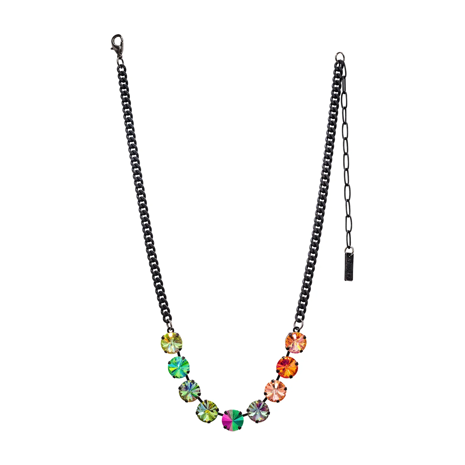 Make a sparkly statement in style with the Mini Sofia Necklace in Smutt Watermelon! This distinctive design, crafted from a high-quality Smutt plated, Brass base metal and adorned with gleaming crystals, will be sure to get your neckline noticed. Plus, with a 16" chain plus a 4" extension, it's totally adjustable for your perfect fit! Canadian-made so you know it's oot-and-aboot quality.