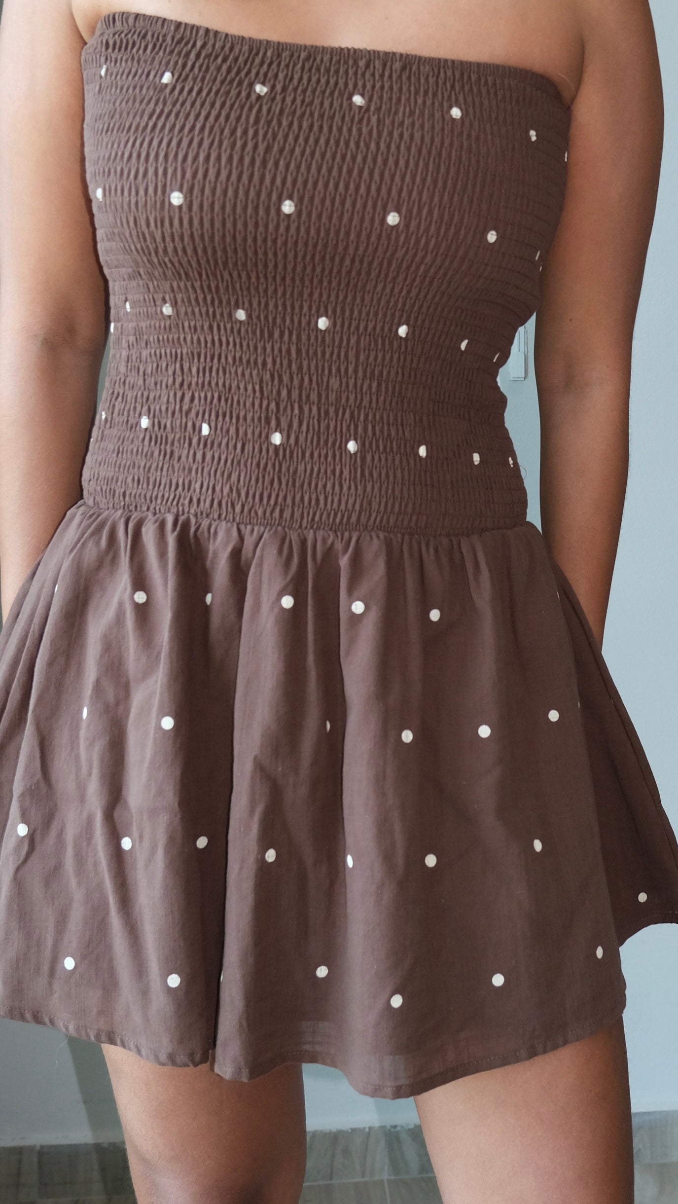 Haven Smocked Mocha Polka Dot Dress