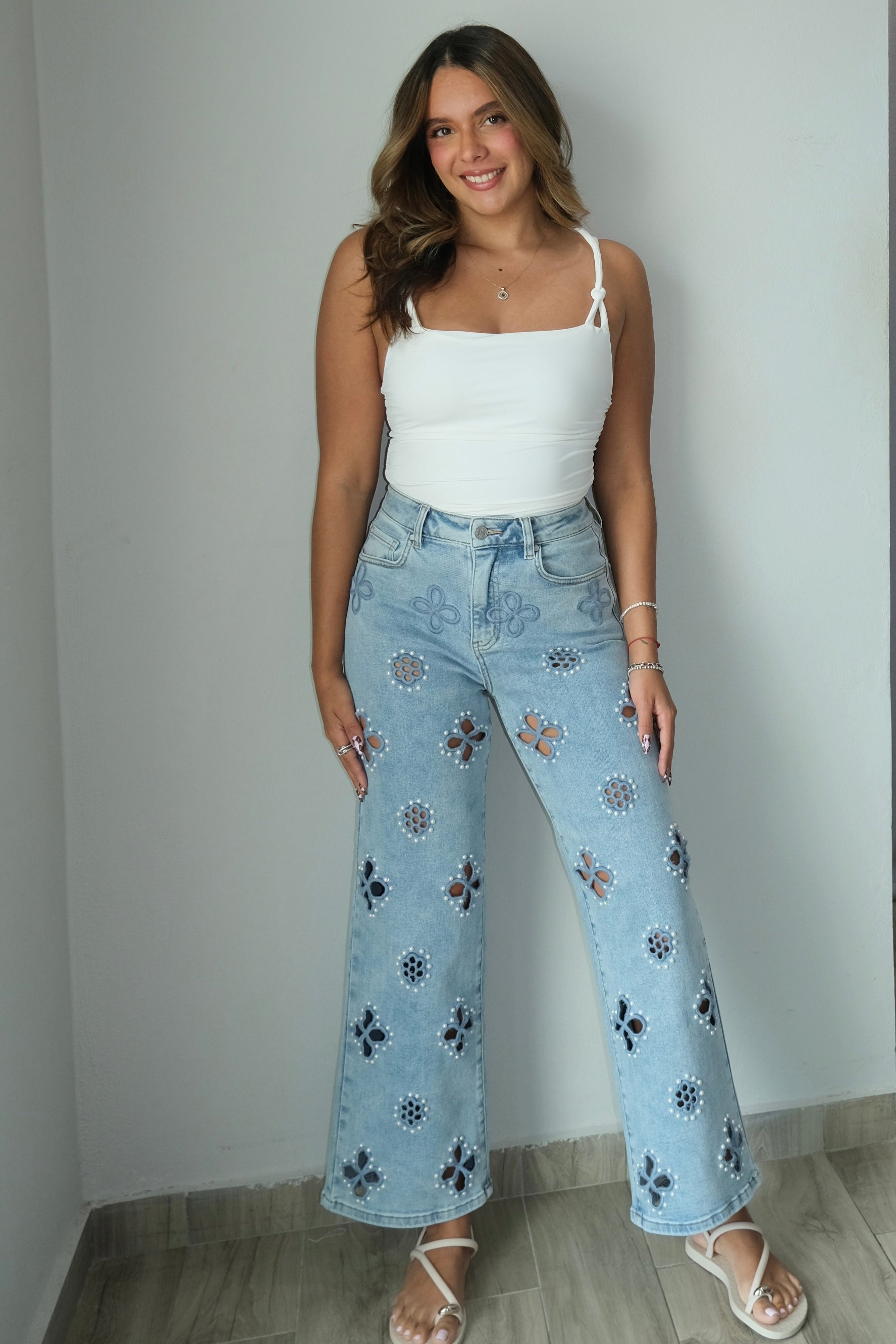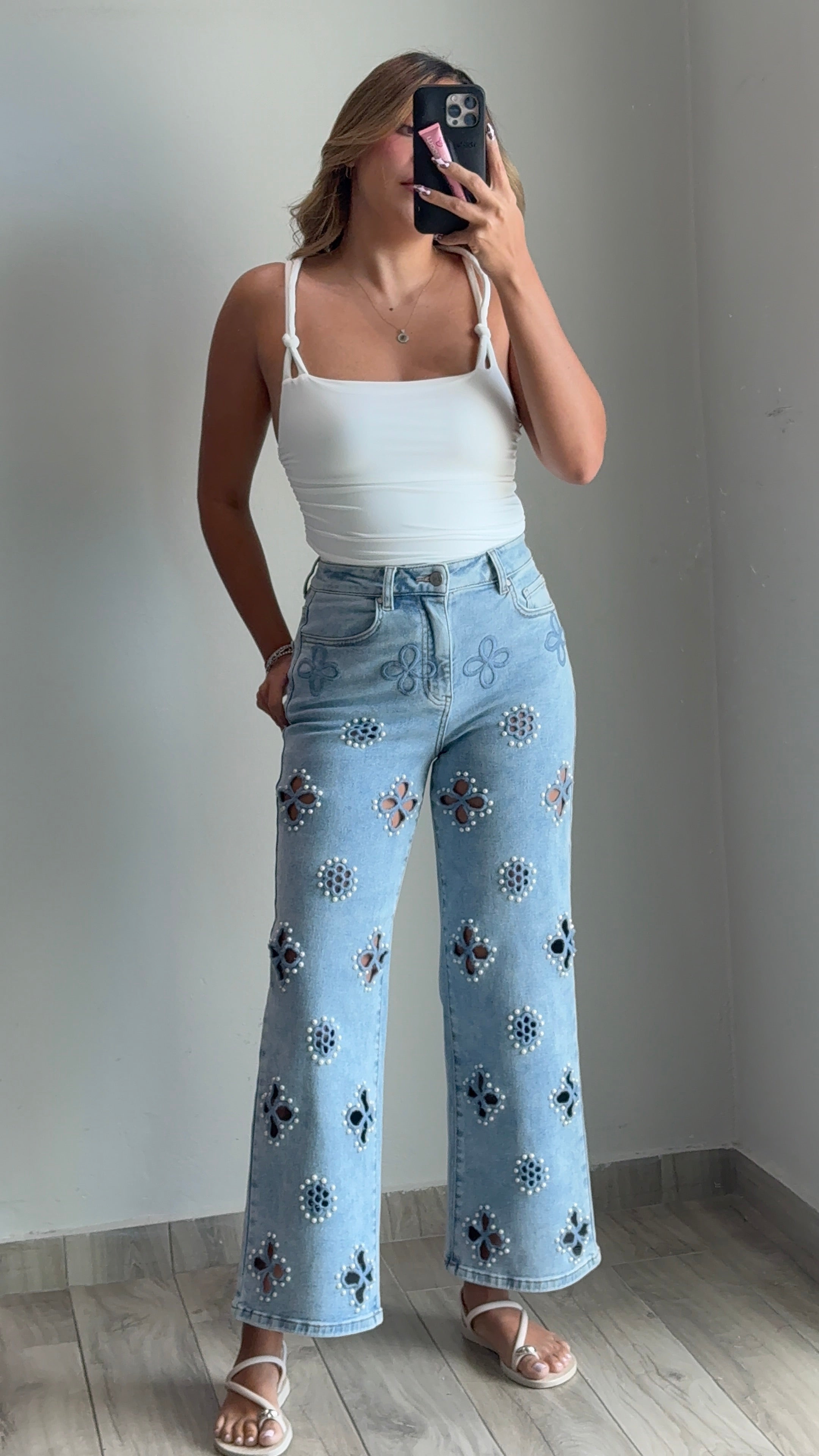 Lucie Pearl Stud High Rise Jeans