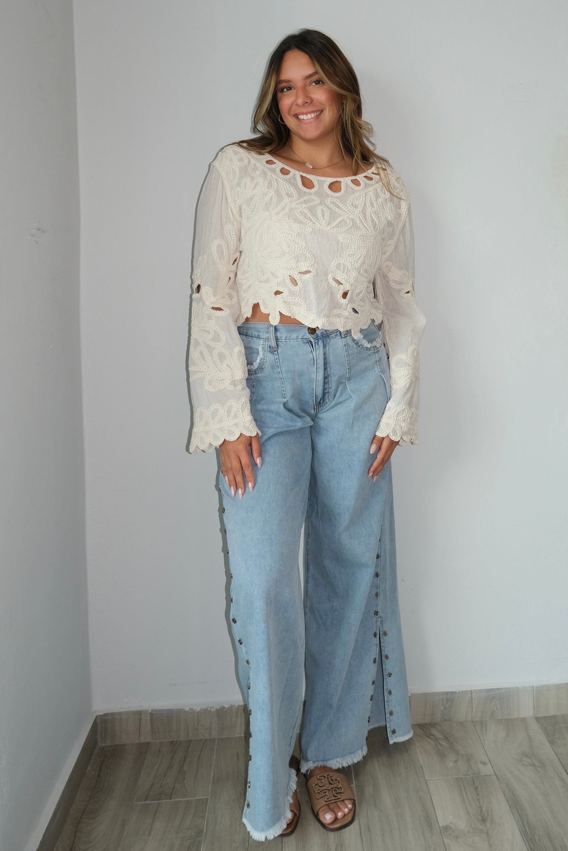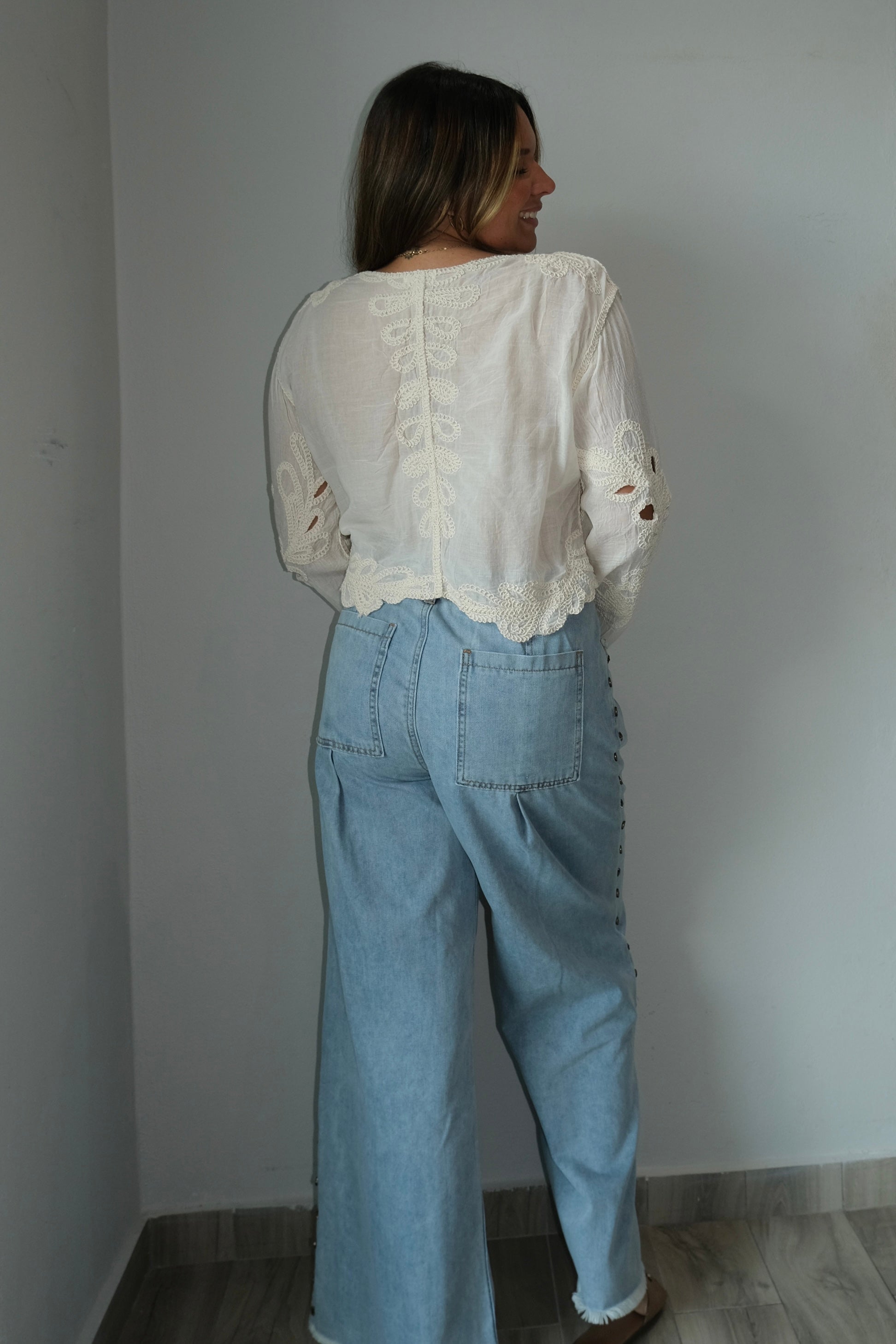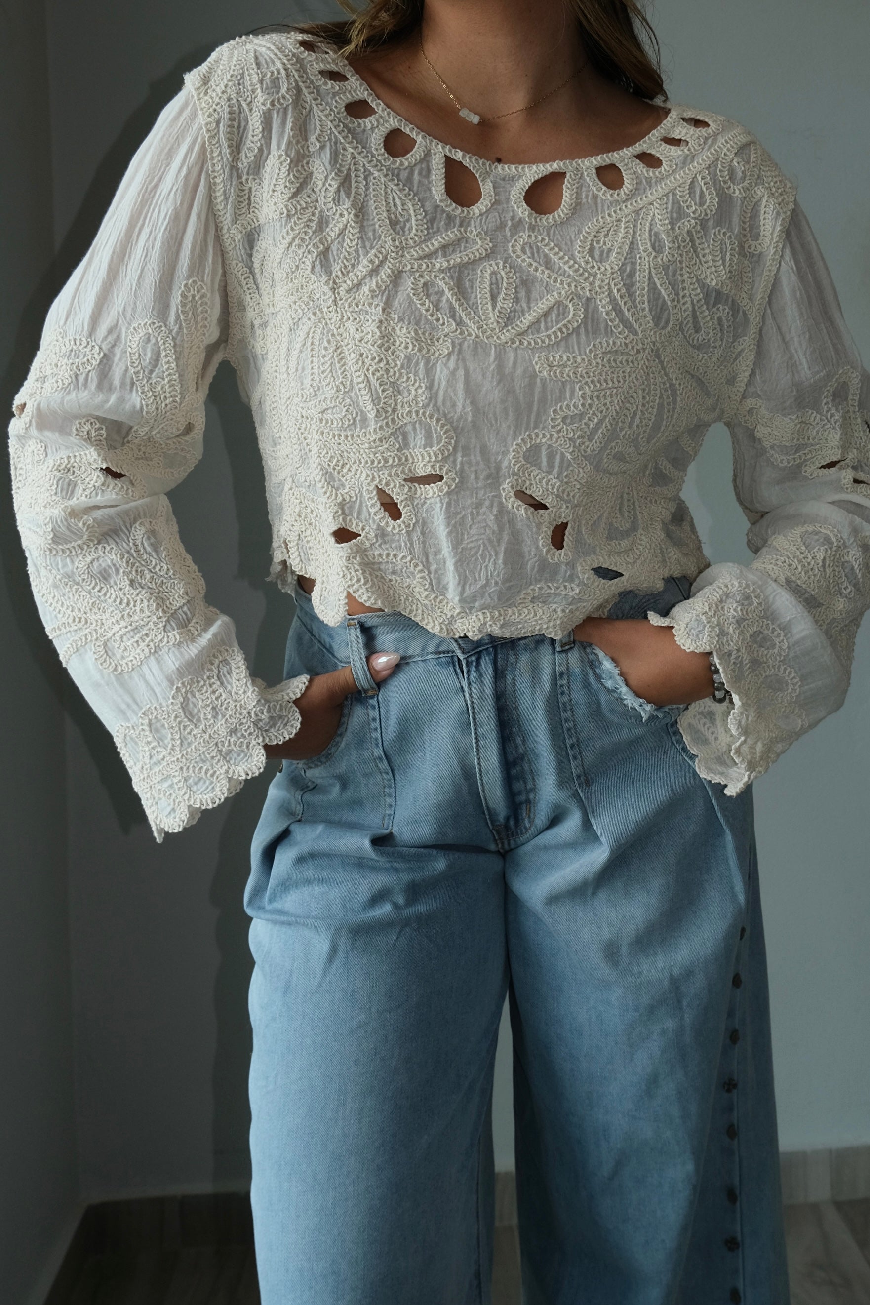 Expertly crafted with 100% cotton, the Lena Crochet Embroidered Top is true to its size for a perfect fit. Elevate your wardrobe with this one size top that offers comfort and style.