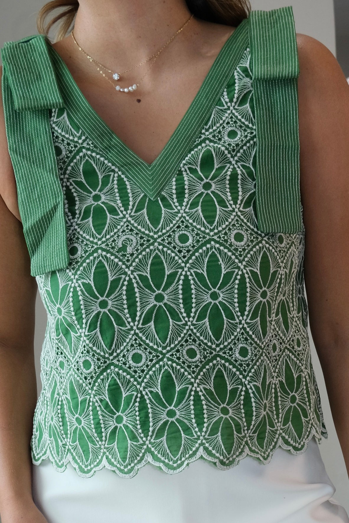 The Rae Embroidered Motif Bow Shoulder Top is perfect for any occasion. Made from 100% cotton, this top runs true to size and doesn't stretch. The model is wearing a small, but if you're in between sizes, we recommend going one size up for a comfortable fit. Discover the benefits of this top's perfect fit for yourself.