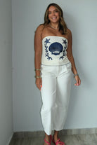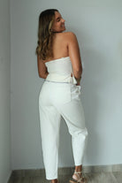 Crafted from 100% cotton, the April Twill Barrel Jeans offer a comfortable and stylish look. Designed to run true to size, these jeans are perfect for everyday wear and effortlessly transition from day to night. The model is wearing a size small.