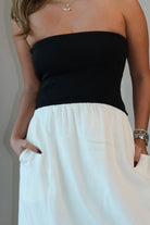 The Aritzia Strapless Knit Dress fits true to size, providing a sleek and comfortable silhouette. For those who fall between sizes, selecting the smaller size is recommended to achieve the best fit. The model is wearing a size small, offering a clear reference for sizing choices. This dress features a strapless design crafted from knit fabric, combining elegance with ease of wear.