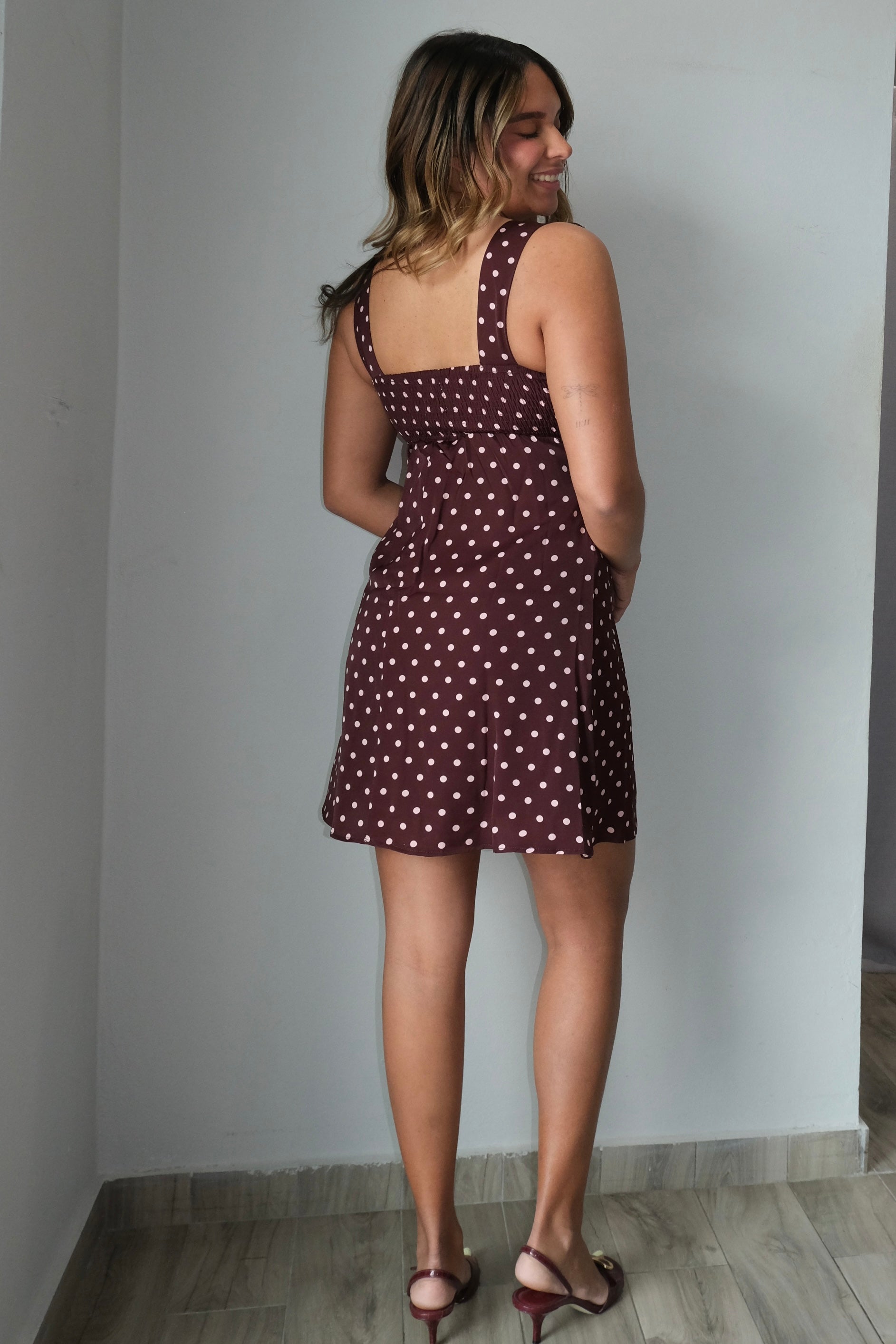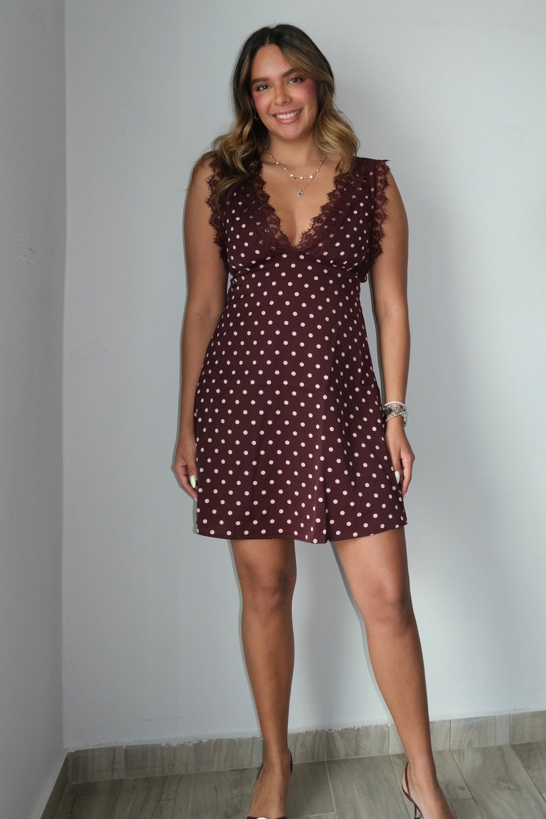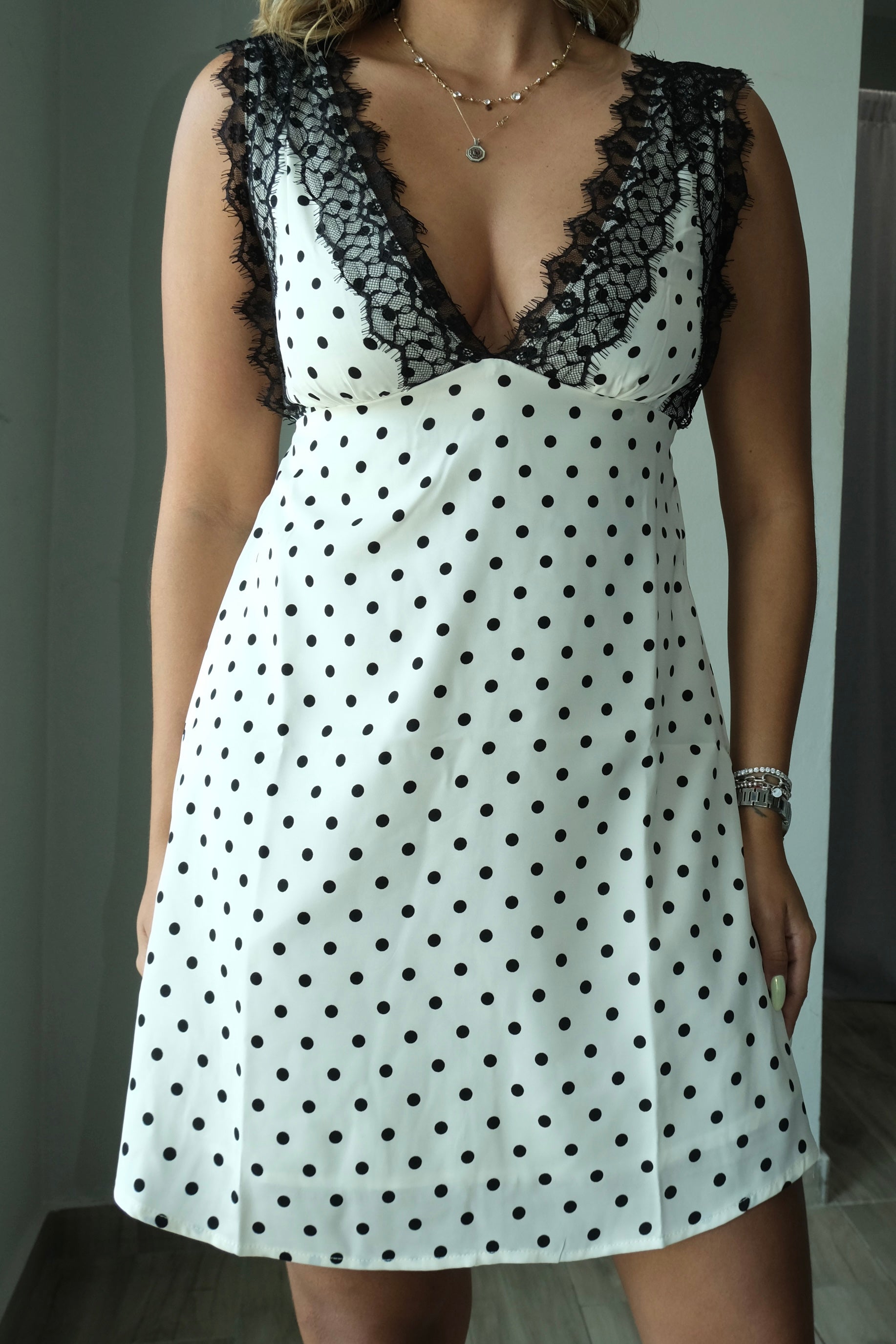 Celia Lace Trim Polka Dot Dress