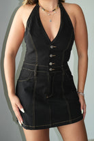 Millie Stretch Contrast Stitch Halter Dress